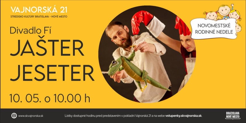Bábkové predstavenie Divadla Fí organizované v rámci Novomestských rodinných nedieľ je vhodné pre deti od 4 rokov.