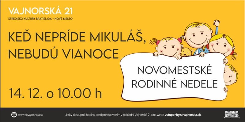 Predstavenie organizované v rámci Novomestských rodinných nedieľ je vhodné pre deti od 3 rokov.