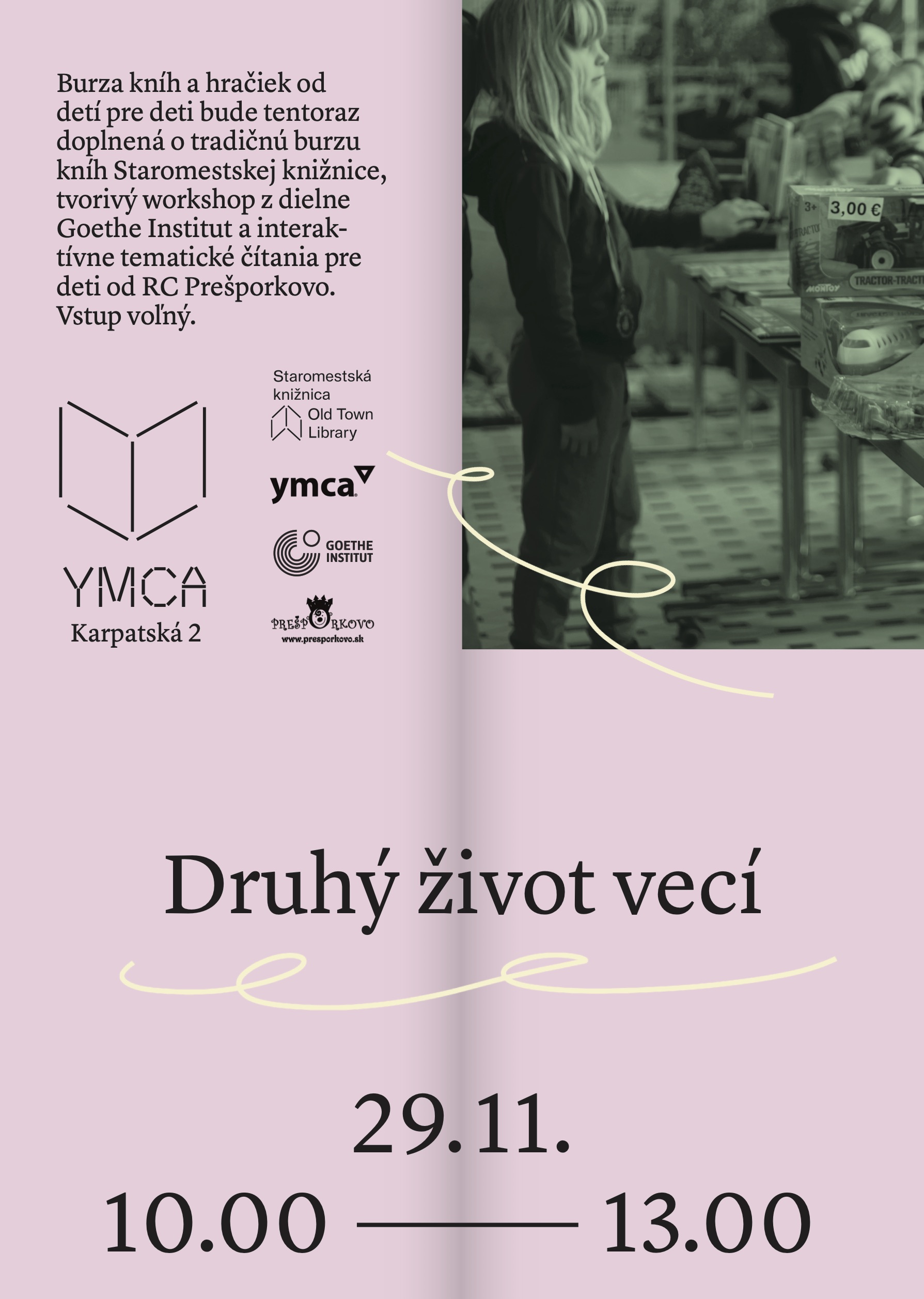 Posledná novembrová sobota bude v známej bratislavskej budove YMCA na Karpatskej ulici patriť deťom, knihám a udržateľnosti. Staromestská knižnica v Bratislave pozýva verejnosť na podujatie Druhý život vecí, ktoré sa uskutoční v sobotu 29. novembra od 10.00 do 13.00. Podujatie spája tému udržateľnosti s čítaním, tvorivosťou a komunitnou atmosférou.