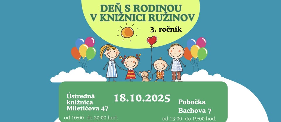 Pripravte sa na deň, ktorý spojí rodinu, knihy a zážitky! 18. októbra 2025 sa Knižnica Ružinov premení na miesto plné smiechu, tvorivosti a spoločnej radosti. A nielen tak hocijaké – ide o tretí ročník nášho najväčšieho rodinného podujatia!