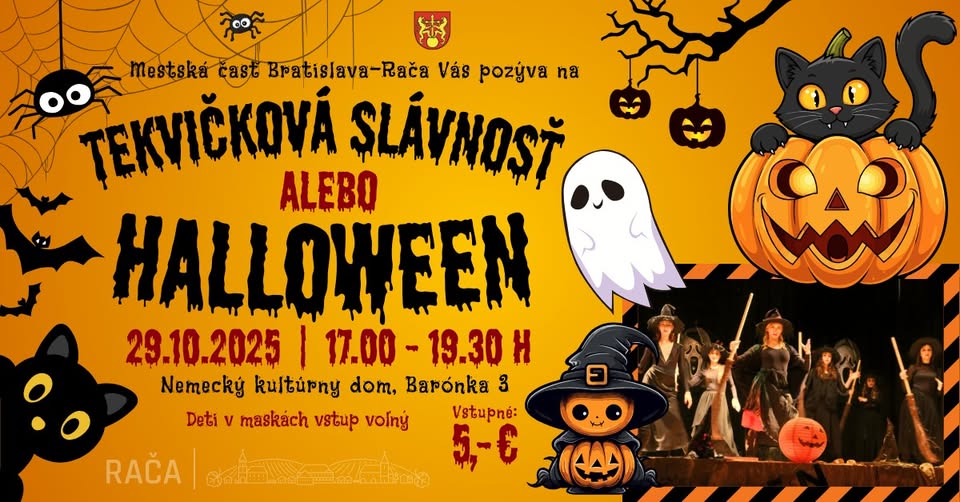 Príďte si užiť magický večer plný jesennej nálady, strašidelných masiek a zábavy pre celú rodinu! V Nemeckom kultúrnom dome na Barónke sa uskutoční obľúbená Tekvičková slávnosť alebo Halloween, kde nebude chýbať vyrezávanie tekvíc, halloweenske hry, maľovanie na tvár či tematické súťaže.