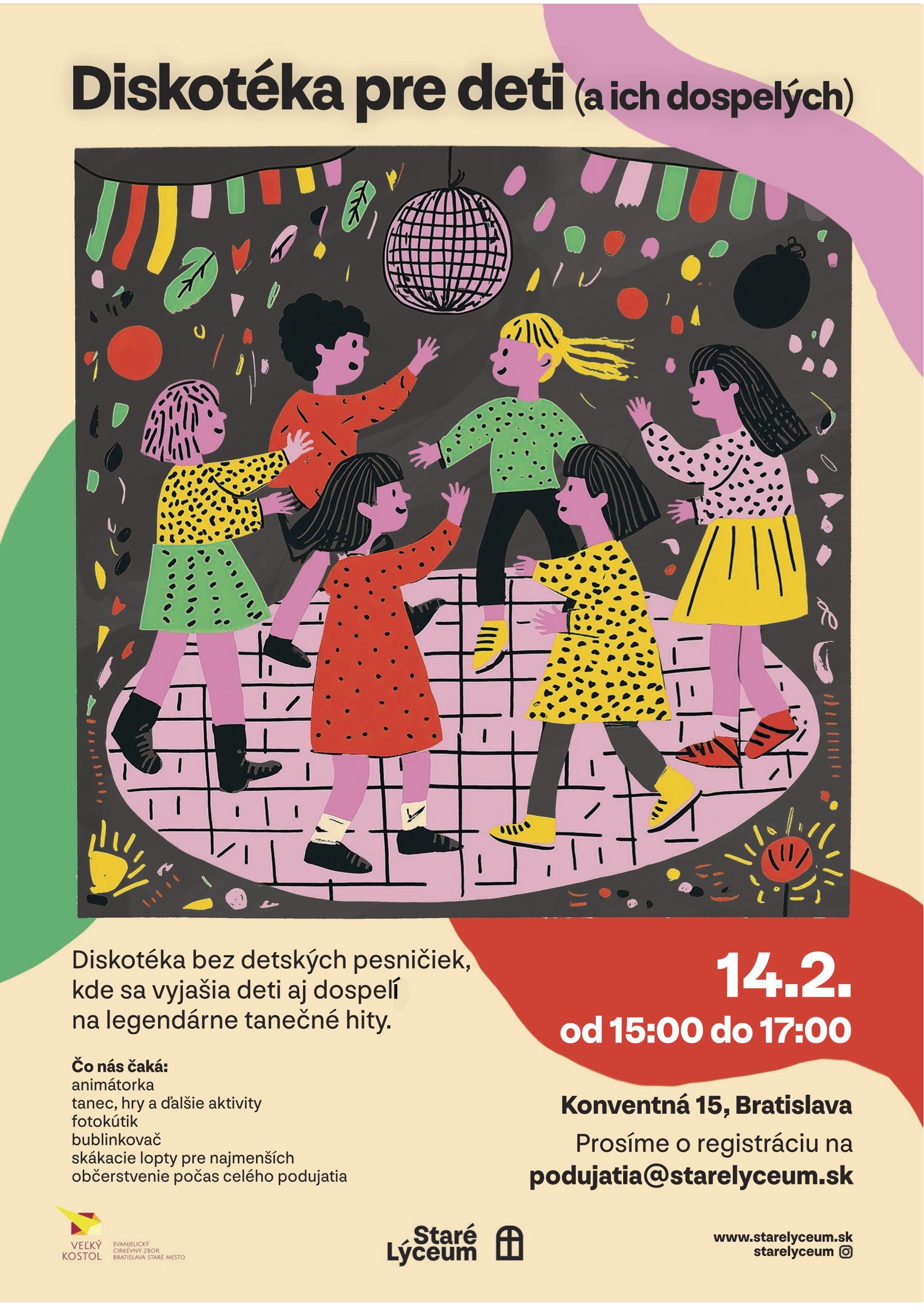 Diskotéka bez detských pesničiek, kde sa vyjašia deti aj dospelí na legendárne tanečné hity. Čaká vás spoločné tanečné popoludnie plné pohybu a zábavy pre celú rodinu.